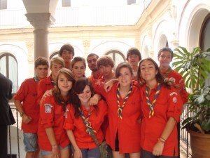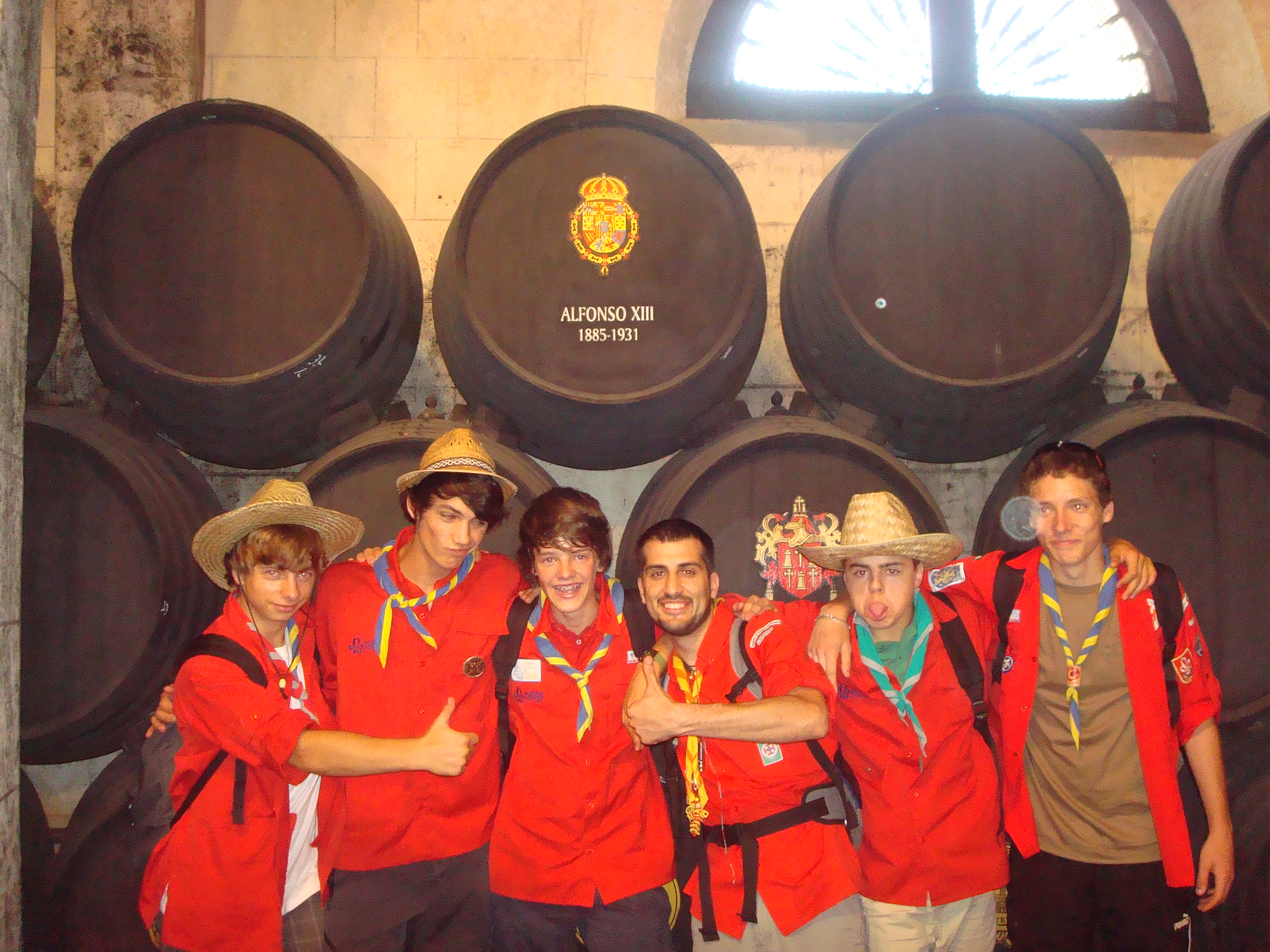 Despues de todas estas visitas, sobre las una o asi, nos llevaron, en dos furgonetas que siempre serian nuestros trasnportes asignados para la estancia en Jerez al local de uno de los grupos scouts del Puerto. Alli entre un monton de scouts disfrutamos de una comida tipicamente andaluza con gambita cocida, mejillones, pescaito frito y gazpacho. Una delicia para muchos y algun suplicio para otros, ya que algunos de mis franceses no estan muy acostumbrados a la comida española. Para finalizar alli, momentos andaluces cantando canciones scouts, pops y bailando sevillanas. Si es que estos jerezanos son la leche.