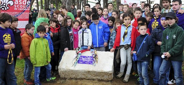 El concejal de Juventud, Daniel Portilla, acompañado por los representantes de la asociación ASDE Scouts de Cantabria , organizadores de la jornada de convivencia, descubrieron la placa en la que aparece grabada una frase del fundador del movimiento juvenil, el británico Baden-Powel.
