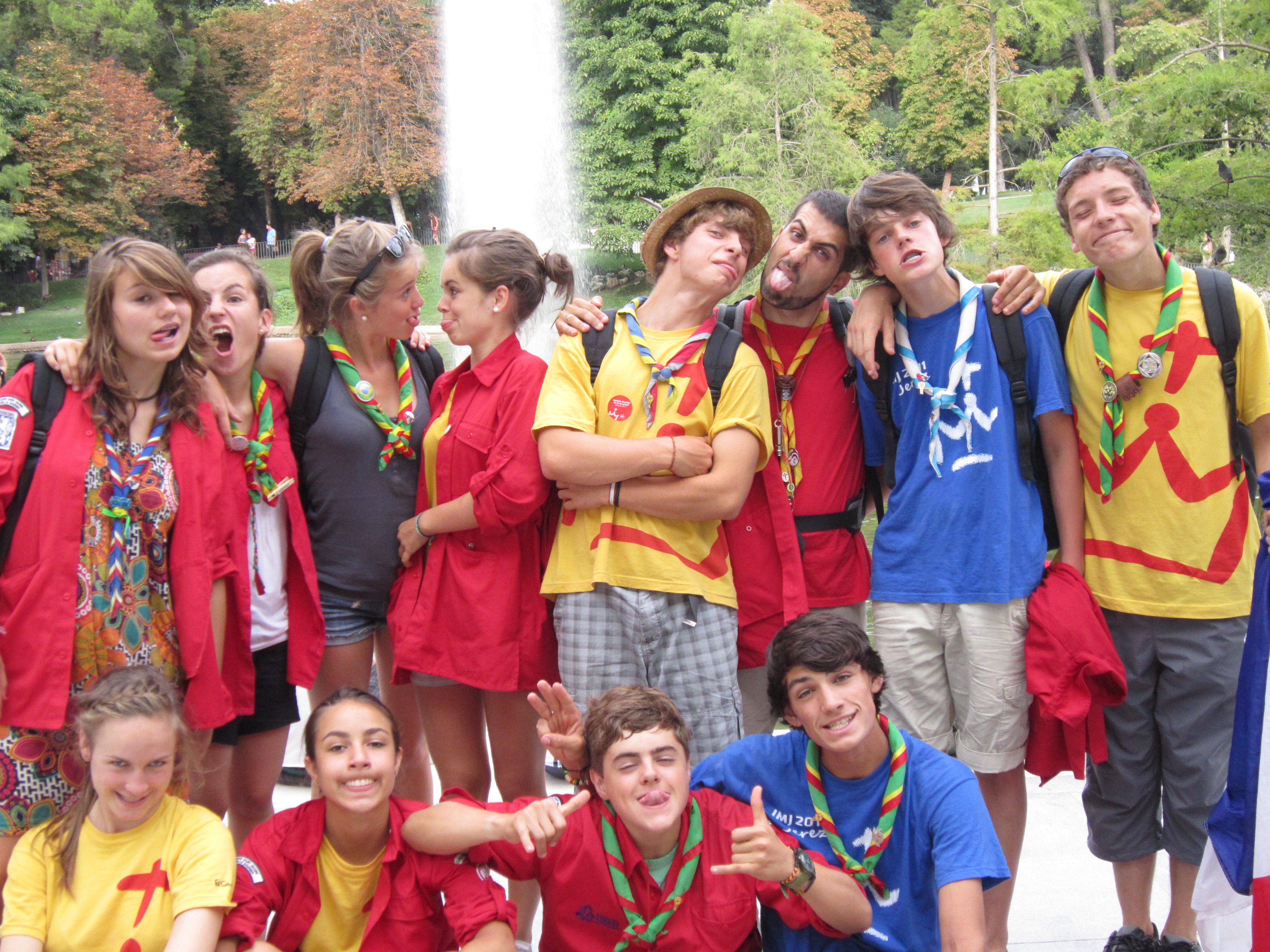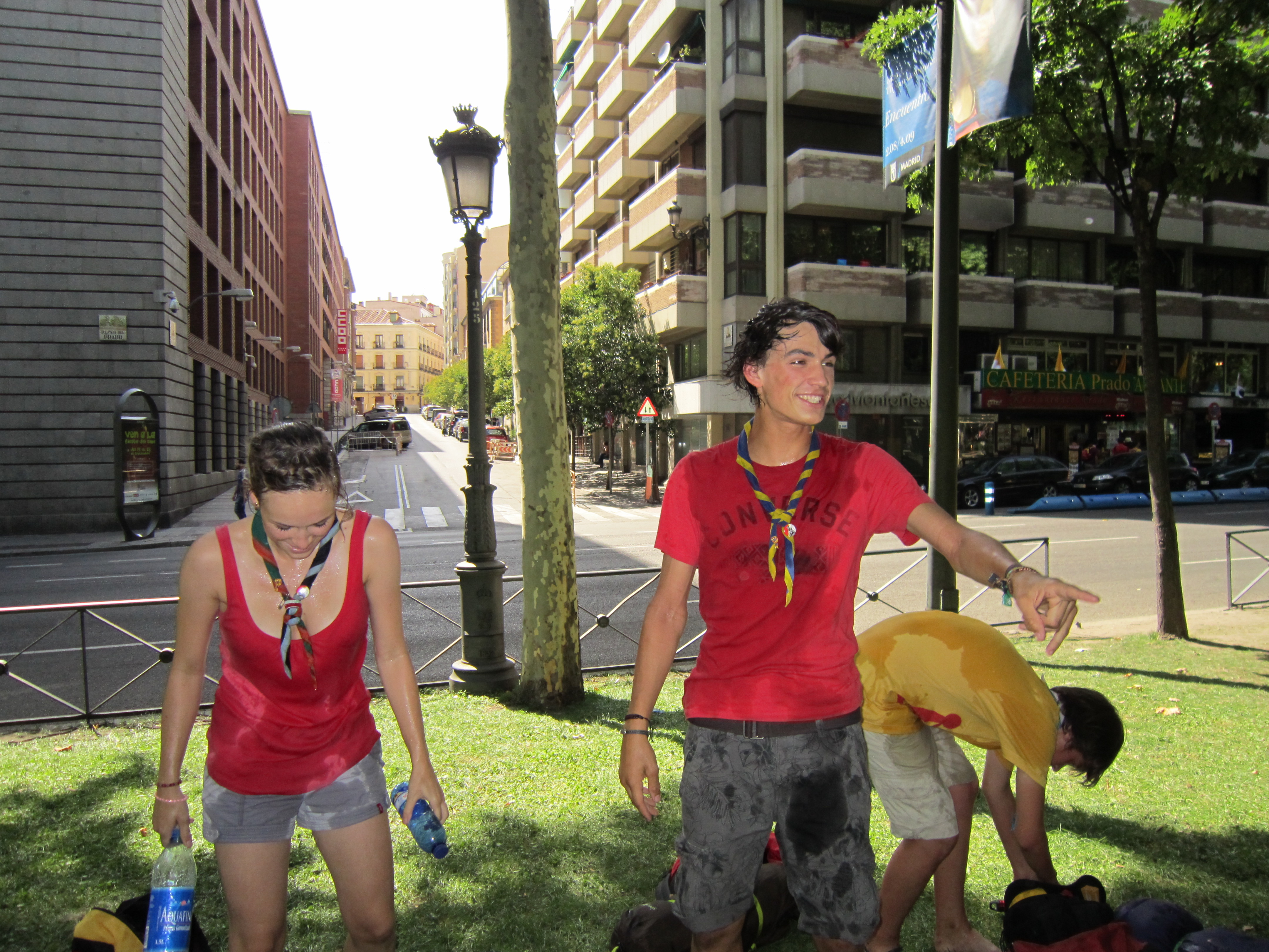 En este dia bajamos a Plaza del Sol para encontrarnos con Ani y Toni que vinieron el fin de semana para vernos y tambien disfrutar del ambiente del JMJ. Saludos y buenos momentos con nuestros niños. La verdad que lo pasamos muy bien con ellos y demostraron que siguen teniendo una gran afinidad con los jovenes scouts. Son magnificos como personas como educadores y lo demuestran con simples gestos.